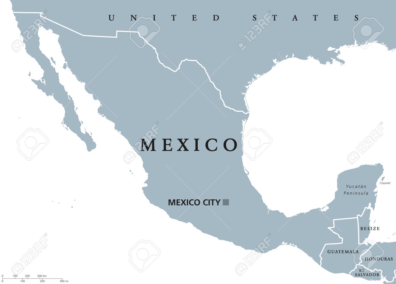 SVG, Vettoriale - La Mappa Politica Del Messico Con Il Capitale Città Del Messico E Dei Confini Nazionali. Stati Uniti Del Messico, Una Repubblica Federale In Nord America. Illustrazione Grigio Con Etichettatura