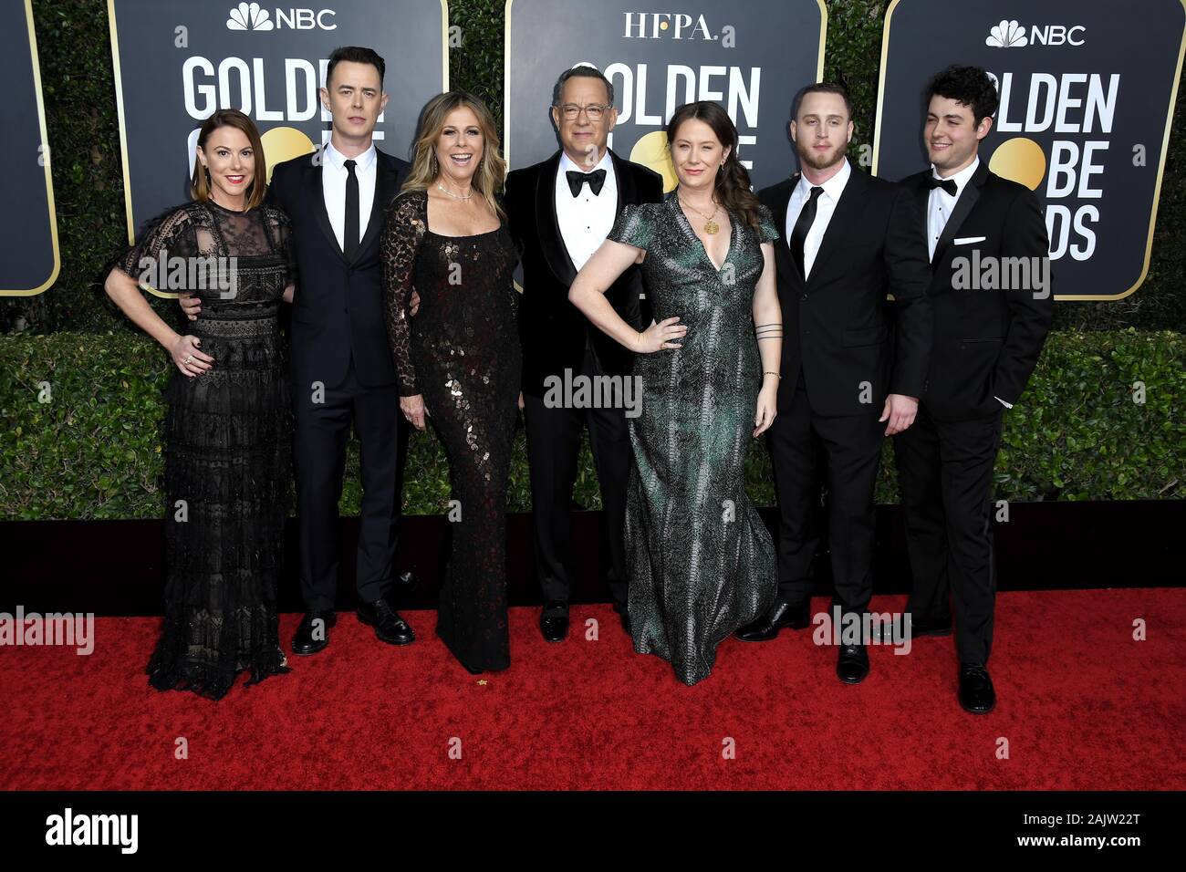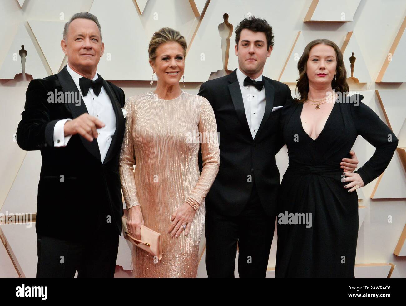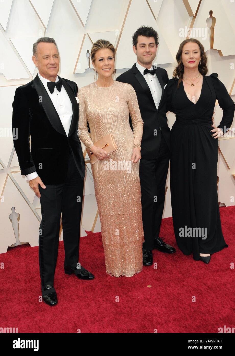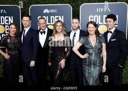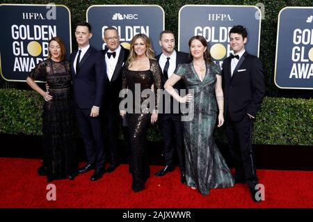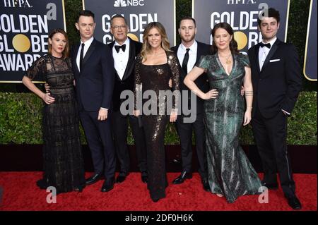 Host Tom Hanks, left, poses with Dr. Ann Garber-Rimoin, center, widow of the late medical genetics expert David L. Rimoin, M.D., Ph.D., and Dr. Jim Varga during a tribute to Rimoin, Thursday,