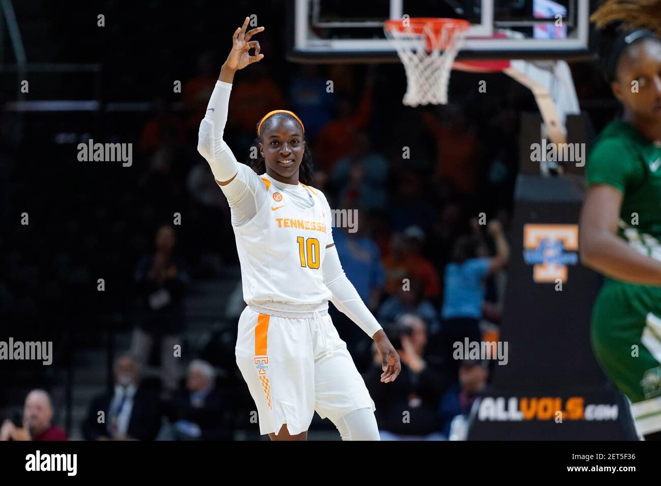 5 dicembre 2018: Meme Jackson n° 10 del Tennessee Lady Volunteers celebra un basket a 3 punti durante la partita di basket NCAA tra l'Università del Tennessee Lady Volunteers e la Stetson