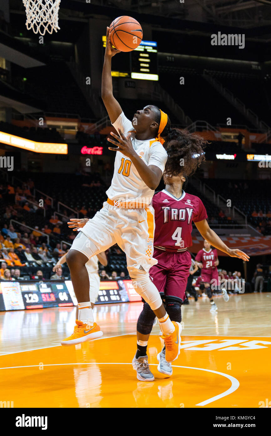 6 dicembre 2017: Meme Jackson #10 del Tennessee Lady Volunteers Spara la palla mentre è difeso da Jasmine Robinson #4 di Troy Trojan orologi durante il NCAA pallacanestro tra la University of