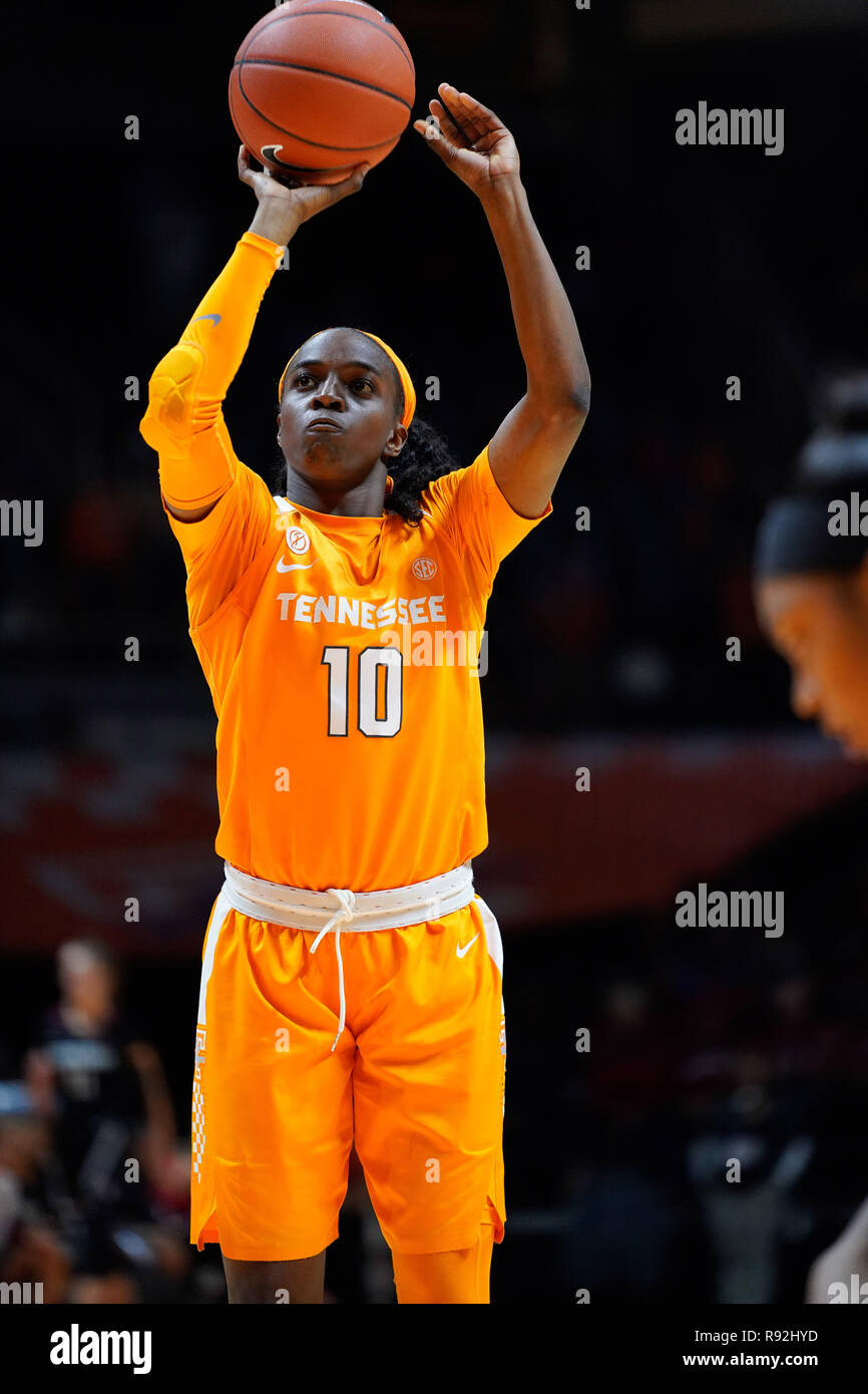 Dicembre 18, 2018: Meme Jackson #10 del Tennessee Lady Volunteers spara un tiro libero durante il NCAA pallacanestro tra la University of Tennessee Lady volontari e l'Università di Stanford Cardinale a Thompson