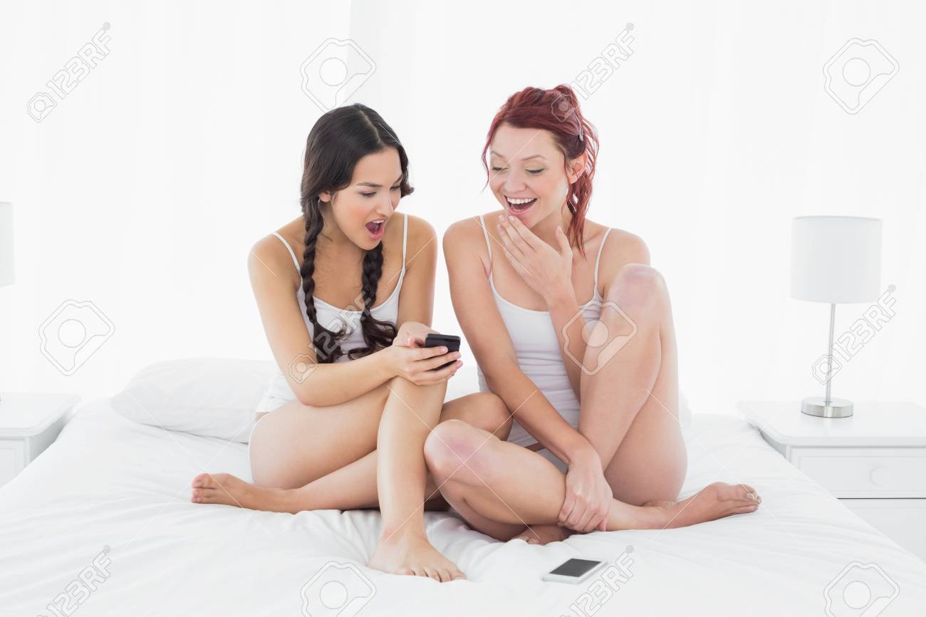 Immagini Stock - Lunghezza Completa Di Due Scioccato Giovane Amiche Messaggi Di Testo Sul Letto A Casa. Image 25466594