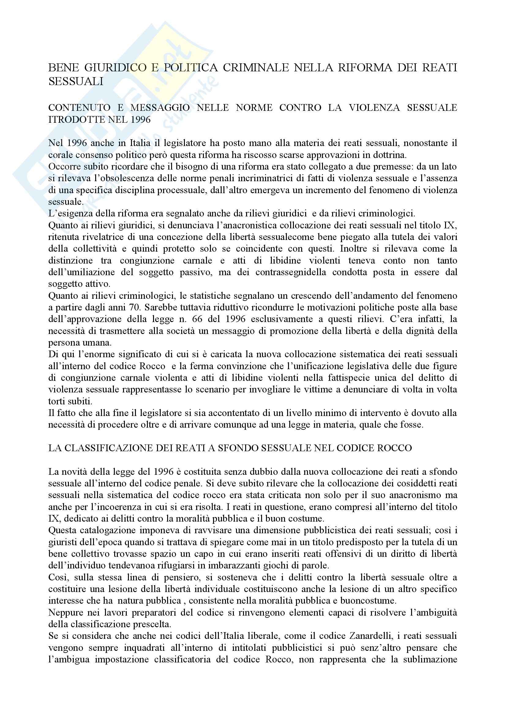 Diritto penale - la riforma sui reati sessuali