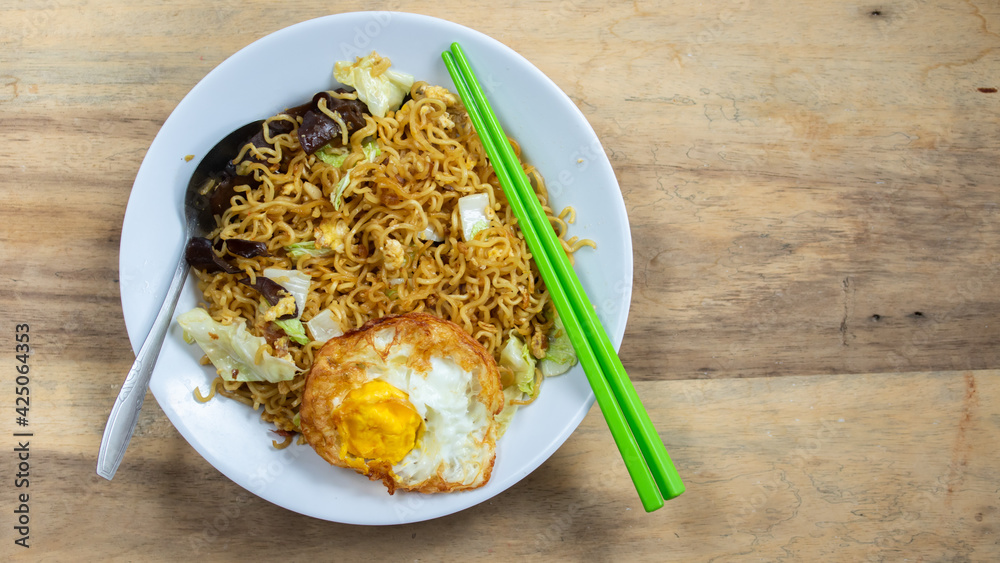 Mie Goreng. Instant Noodles. Fried Noodles. Fried Noodles are Placed on a Plate. Fried Noodles from Indonesia. High Angle View Stock Photo - Image of closeup, produce: 247332140
