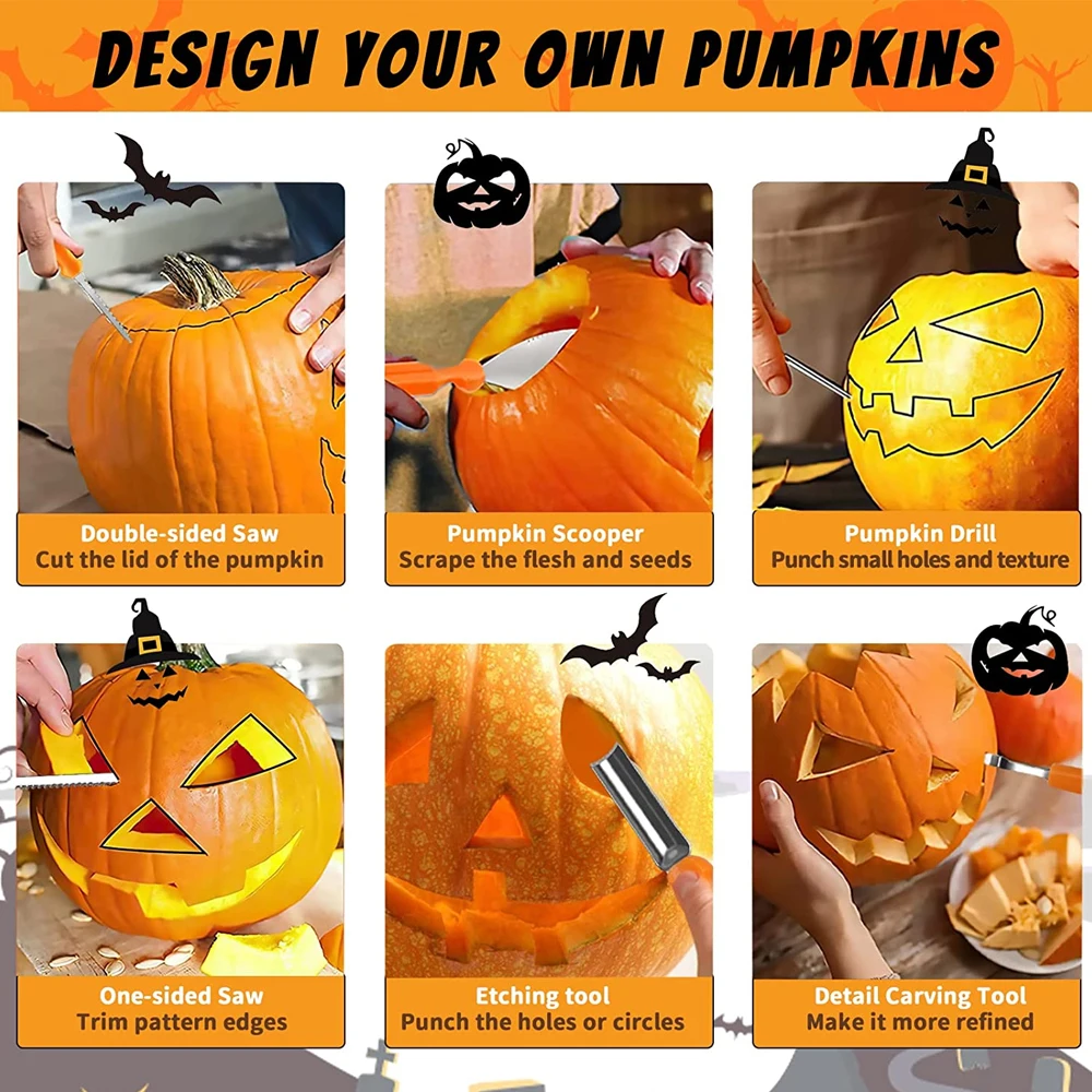 W Rxkiocs 13 Pezzi Kit Intaglio Zucca Halloween Zucche Halloween Decorative Zucca Halloween Zucche per Halloween Kit per Intagliare la Zucca Professionale di Halloween per Adulti Bambini : Amazon.it: Casa e cucina