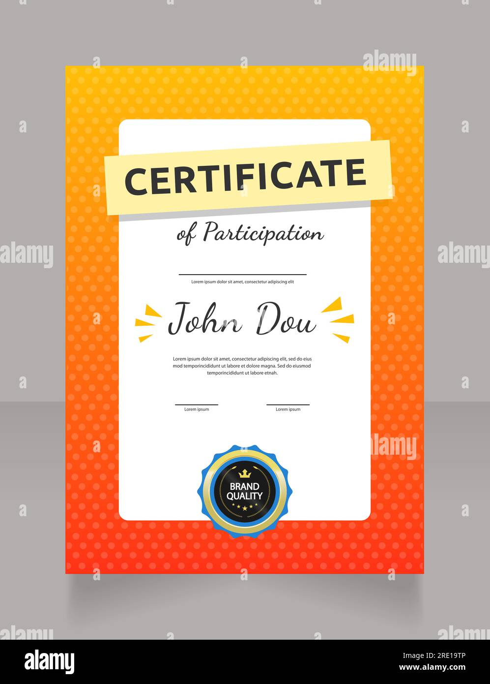 Partecipazione al modello di progettazione dei certificati per conferenze. Diploma vettoriale con copyspace e bordi personalizzati. Documento stampabile per premi e ricog Immagine e Vettoriale - Alamy