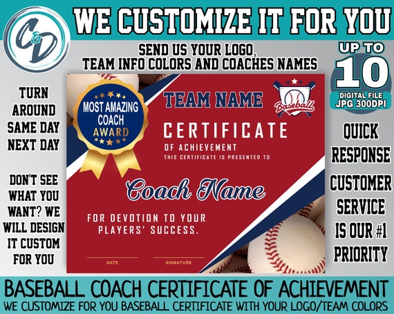 Certificati personalizzati per allenatori di baseball - Etsy Italia
