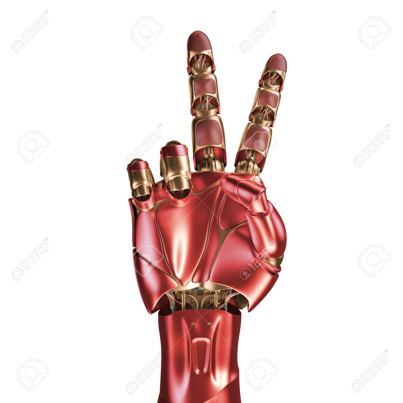 The Hand Of An Iron Man. Red And Gold Coloring. 3d Rendering. Template Isolated On White Background. Stock Photo, Picture and Royalty Free Image. Image 75195827.