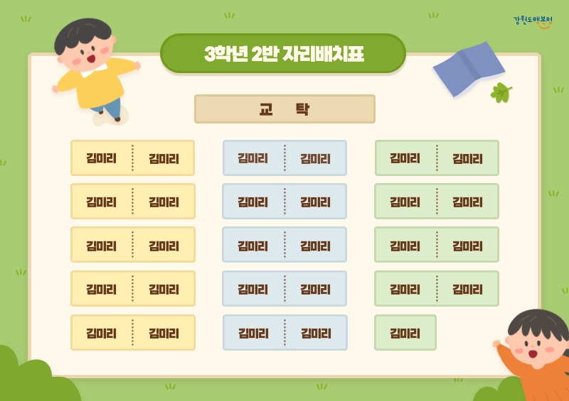 Una simpatica tabella dei posti a sedere illustrata in verde - MiriCanvas