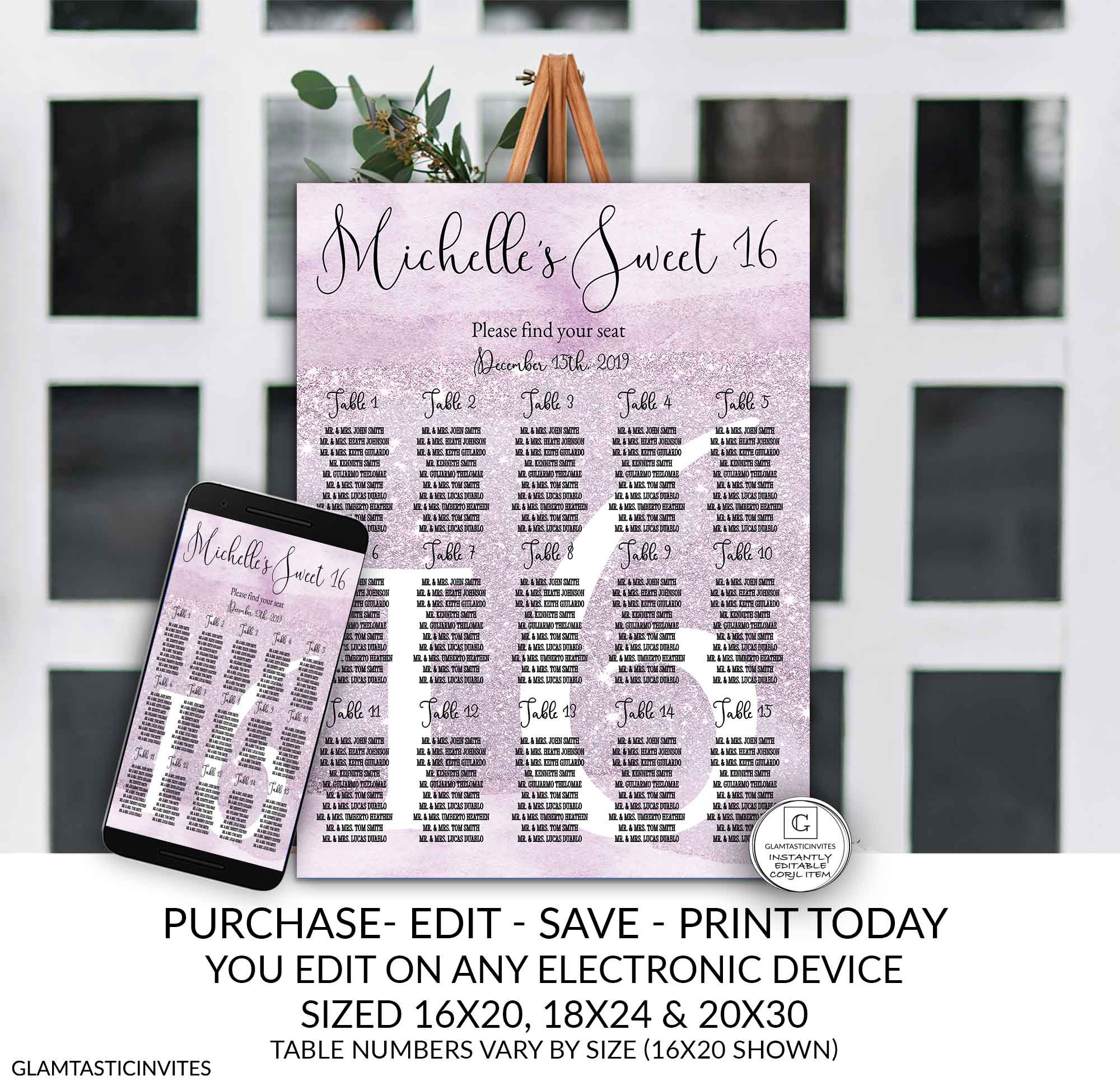 Tabella dei posti a sedere Dolce 16 stampabile Modello per - Etsy Italia