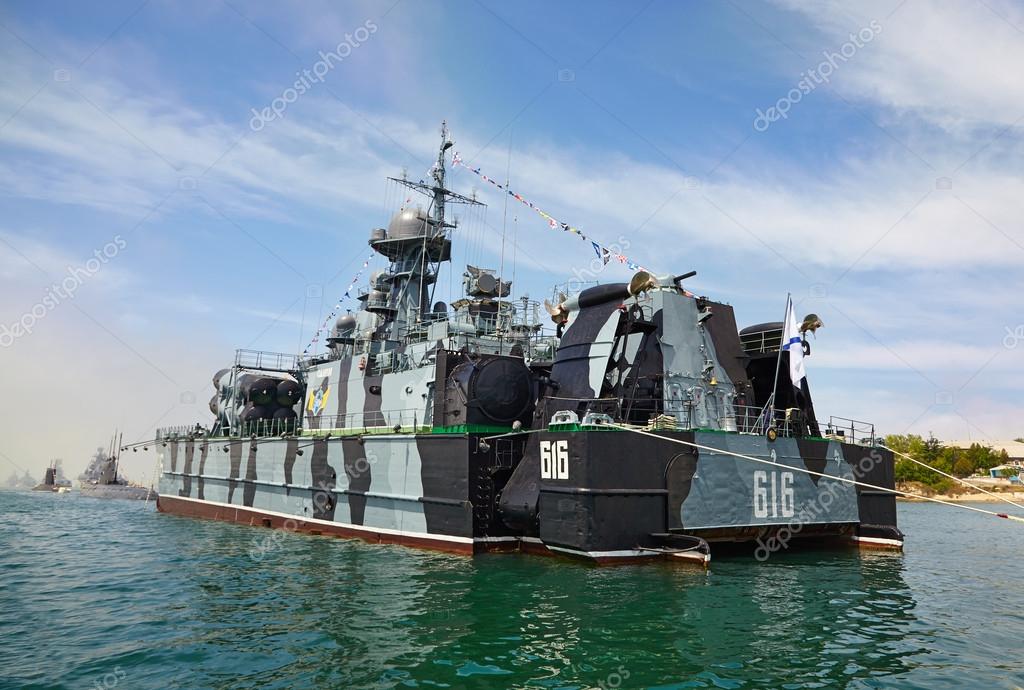 Military Navy Ships In A Sea Bay At Sunset Time Stock Photo, Picture and Royalty Free Image. Image 54637362.