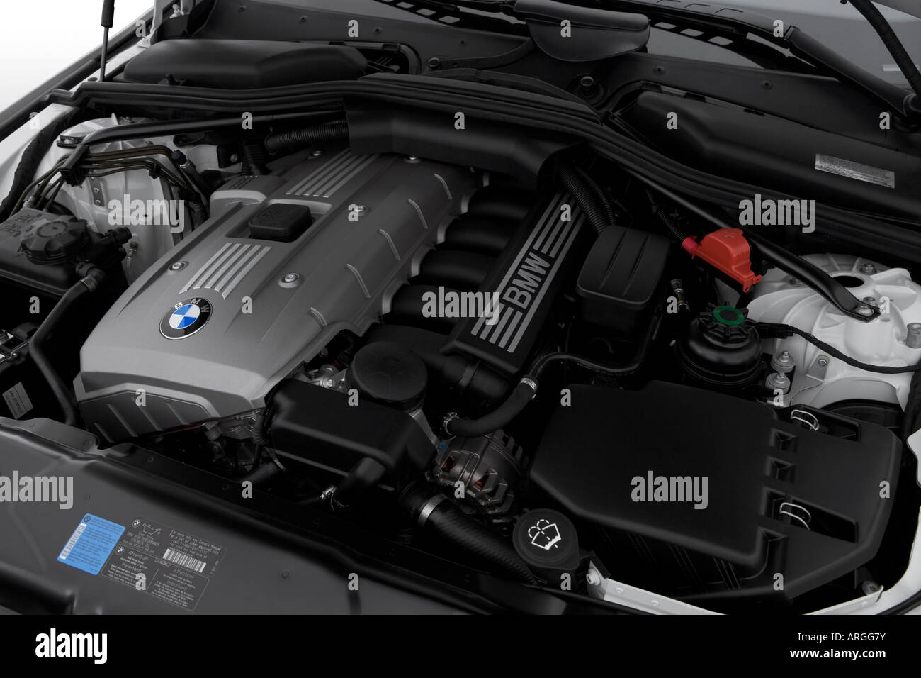 2007 BMW Serie 5 530i in bianco - Motore Foto stock - Alamy