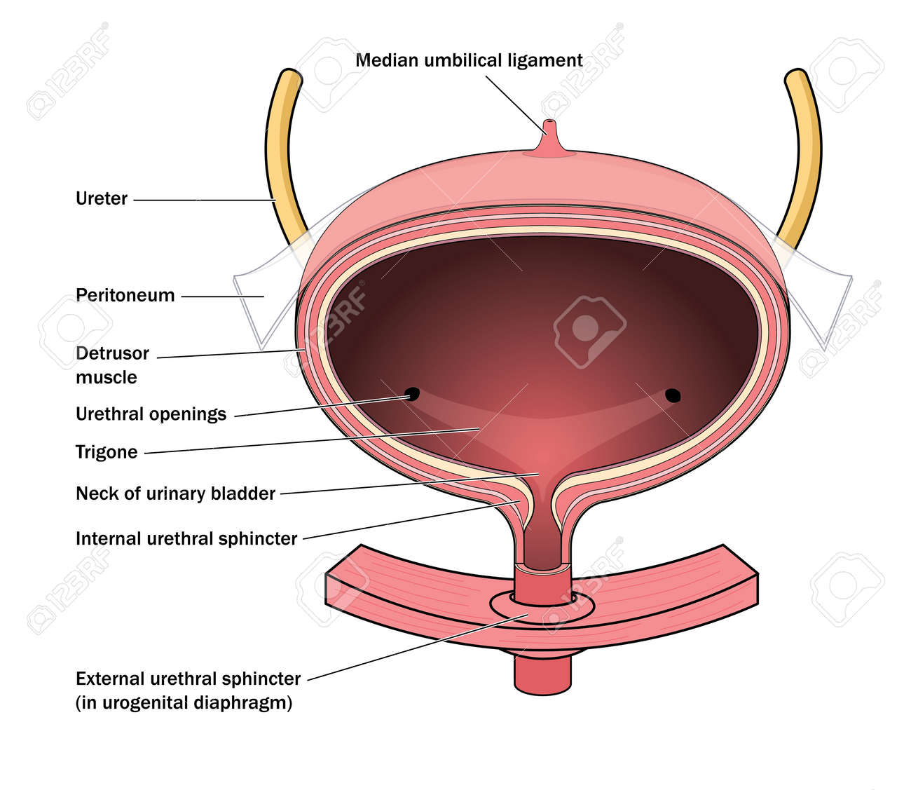 Cross Section Through The Urinary Bladder, Showing The Detrusor Muscle, Ureters, And Urethral Sphincters. Royalty Free SVG, Cliparts, Vectors, and Stock Illustration. Image 81314237.