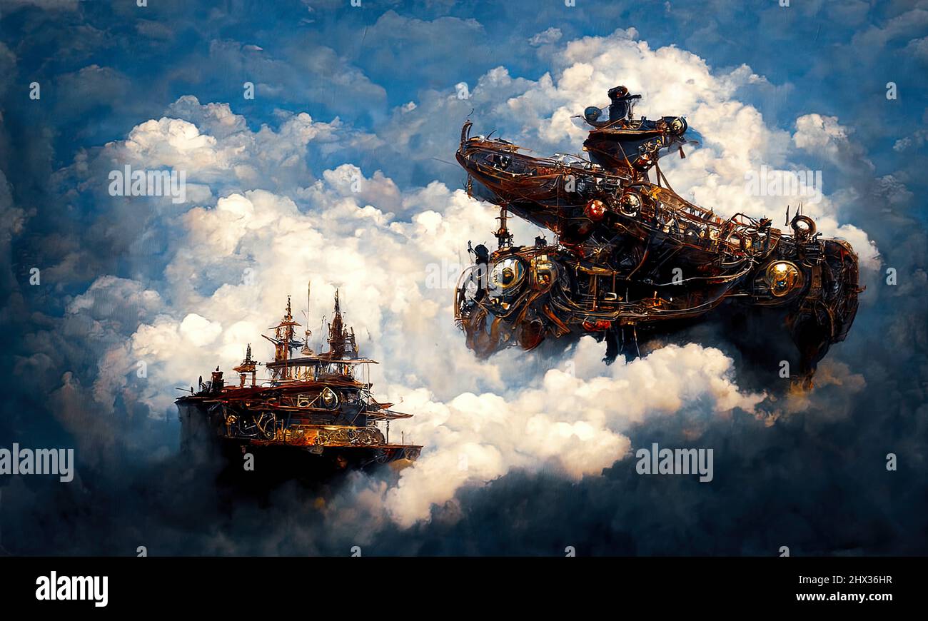 Nave Di Navigazione Alta Di Steampunk Surreale Fotografia Stock - Immagine di surreale, volo: 100990090