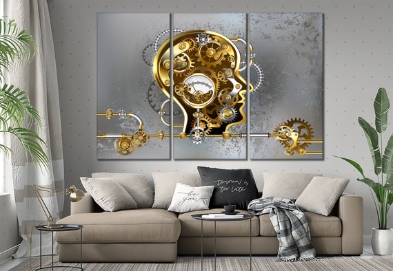 Mechanical Brain Wall Art Steampunk Head Canvas Print Abstract - Etsy