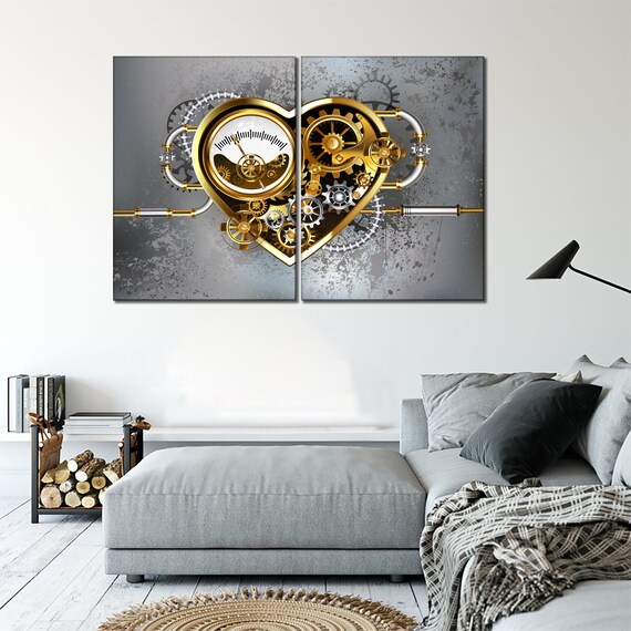 Mechanical Heart Wall Art Abstract Canvas Wall Art Steampunk - Etsy