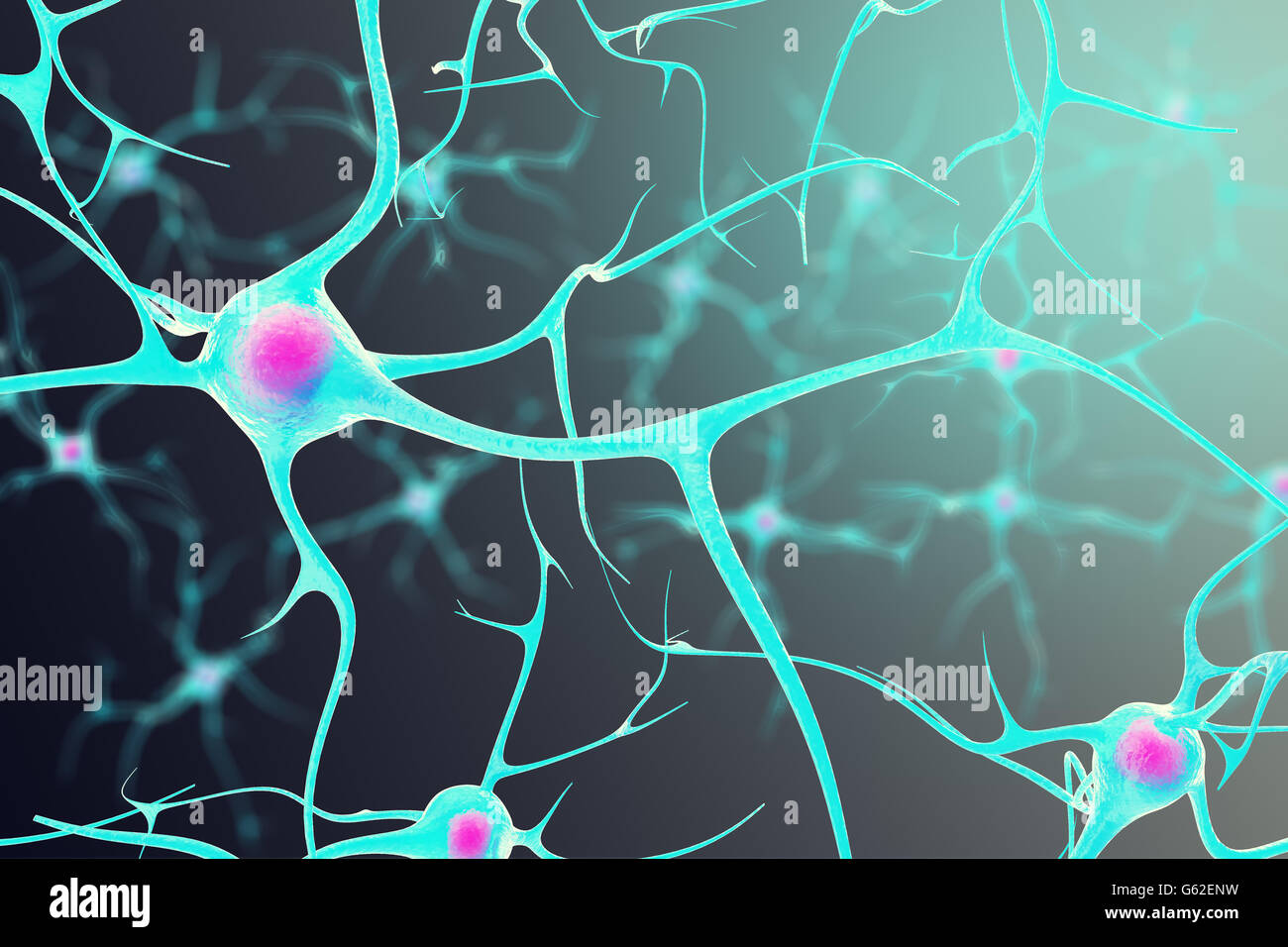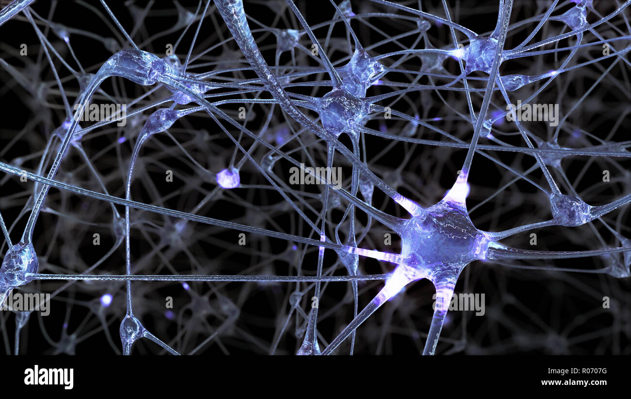 3D rendering di una rete di cellule di neuroni e sinapsi nel cervello attraverso il quale gli impulsi elettrici e scarica pass Foto stock - Alamy