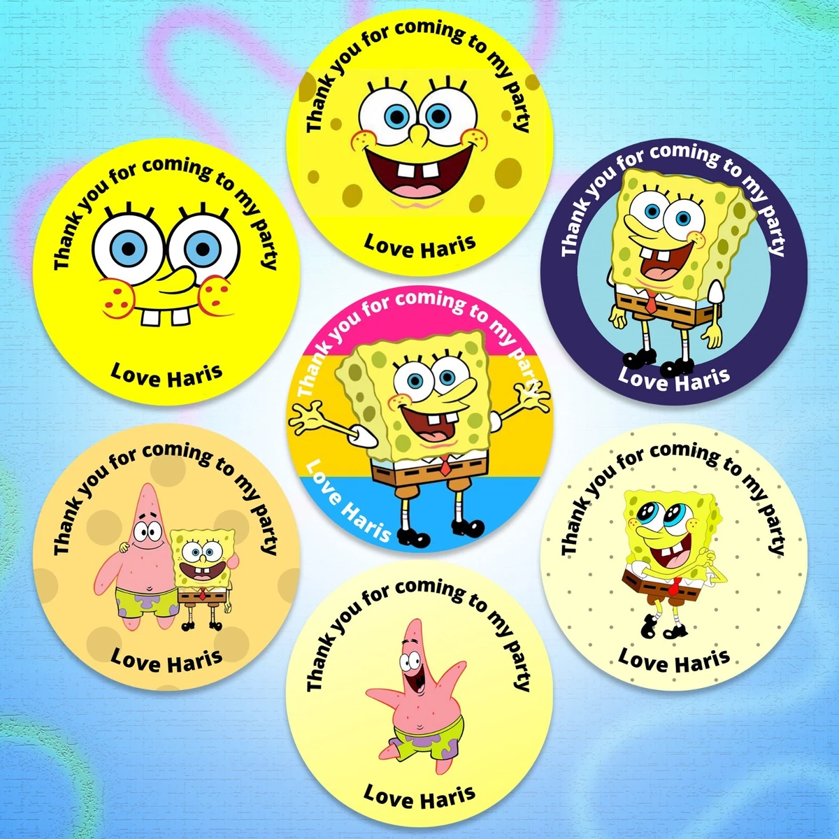Personalised SpongeBob Birthday Stickers Thank You For Coming To My Party | eBay