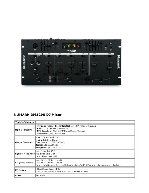 Numark › DM 1200 › Mixer - Gearbase | DJResource