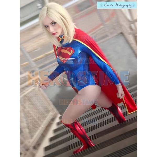 The New 52 Supergirl Printing Female Superhero Cosplay Costume With Cape