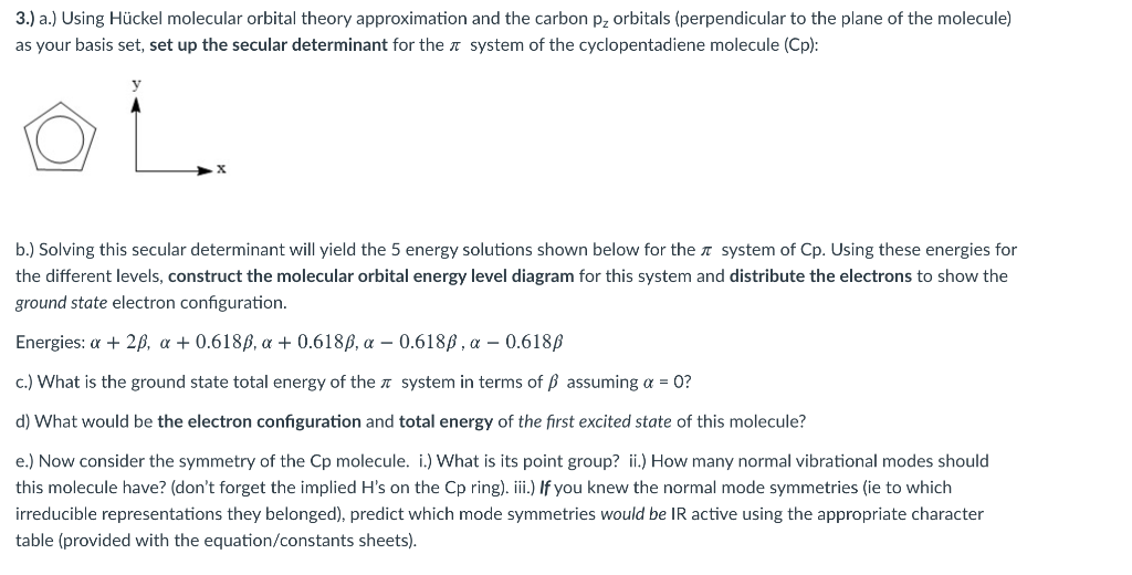 Solved 3.) a.) Using Hückel molecular orbital theory | Chegg.com