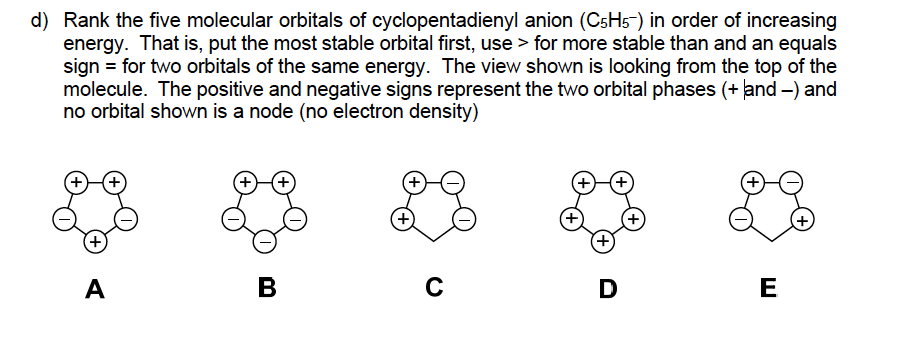 Solved d) Rank the five molecular orbitals of | Chegg.com