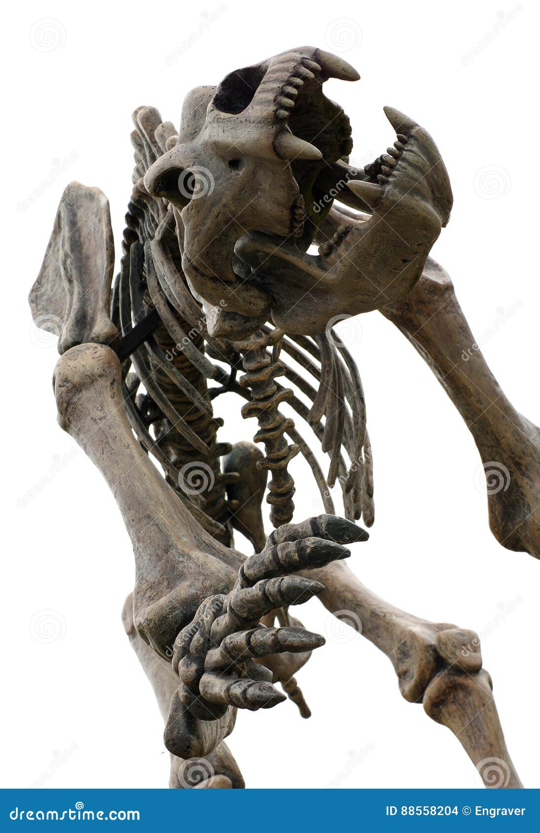 Preistoria: scheletro di orso delle caverne (Ursus spelaeus) dalle Grotte del Bandito a Roaschia in Italia. Periodo del Pleistocene. Museo civico di storia naturale, Milano