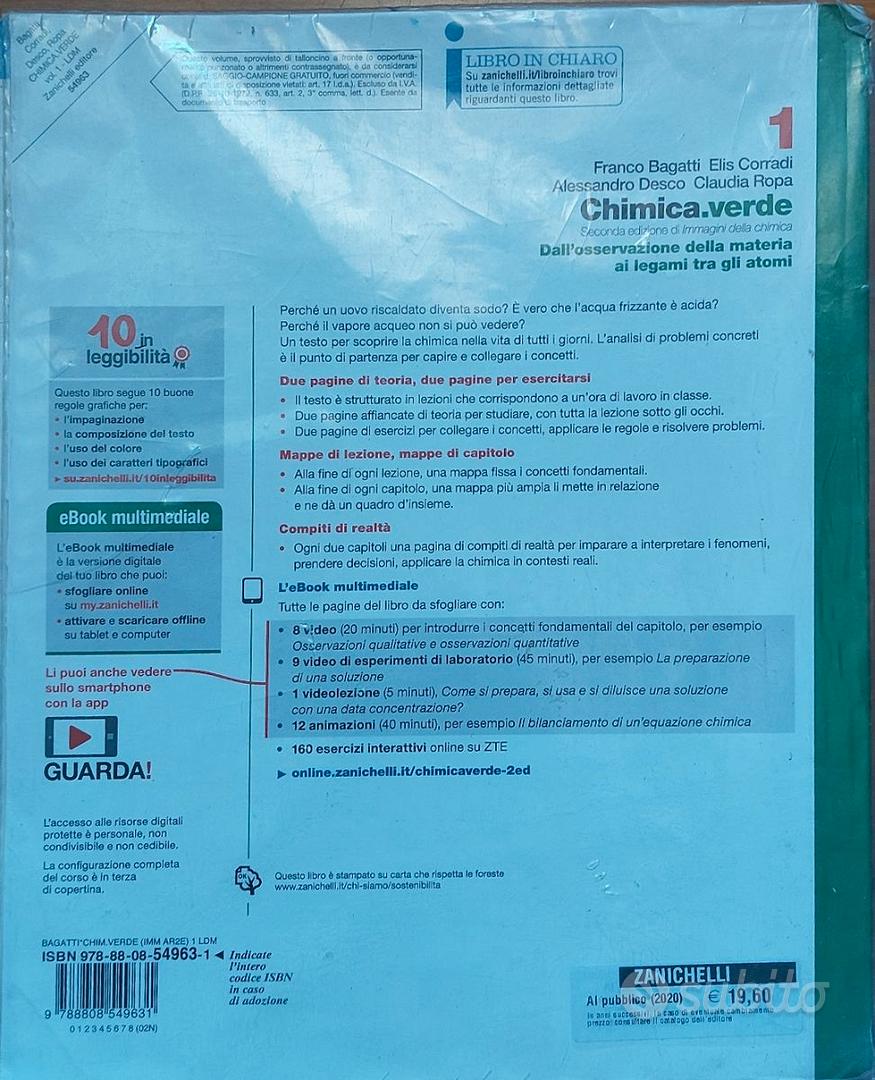Chimica verde 1 Zanichelli - Libri e Riviste In vendita a Biella