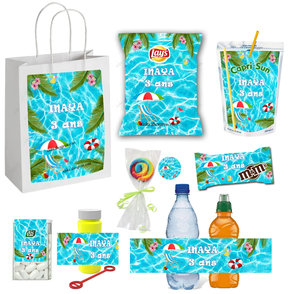 Etichette personalizzate per feste in piscina estiva caprrisun Cover per caramelle borsa per patatine al cioccolato spiaggia al mare Hawaii compleanno Goody Bag Gift - AliExpress