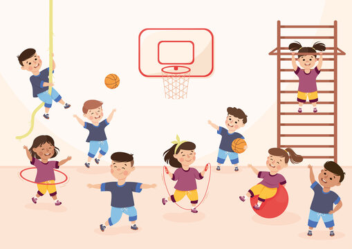 Children Engaged In Physical Education Doing Various Sports During Class At School Vector Illustration Stock Illustration - Download Image Now - iStock