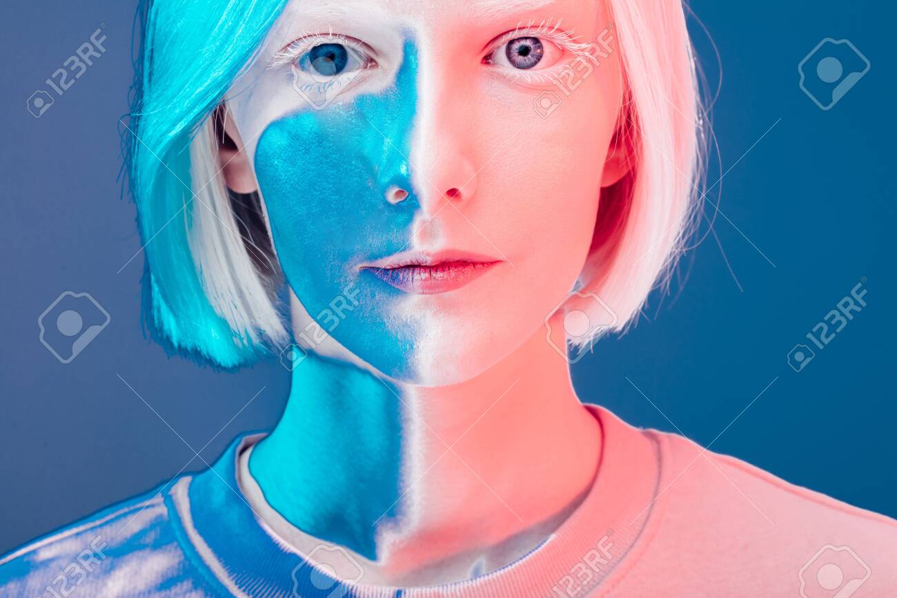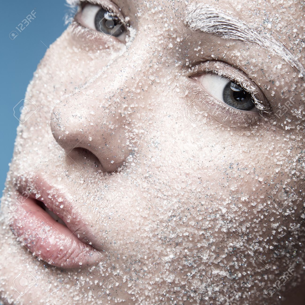 Immagini Stock - Ritratto Di Una Ragazza Con La Pelle Pallida E La Neve Di Zucchero Sul Suo Viso. Creativo Bellezza Fashion Art. Foto Scattata In Studio Su Sfondo Blu.. Image 46801124