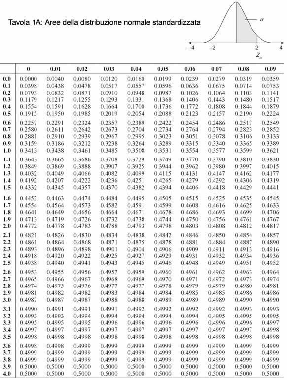 Tavole standardizzata z | Appunti di Statistica | Docsity