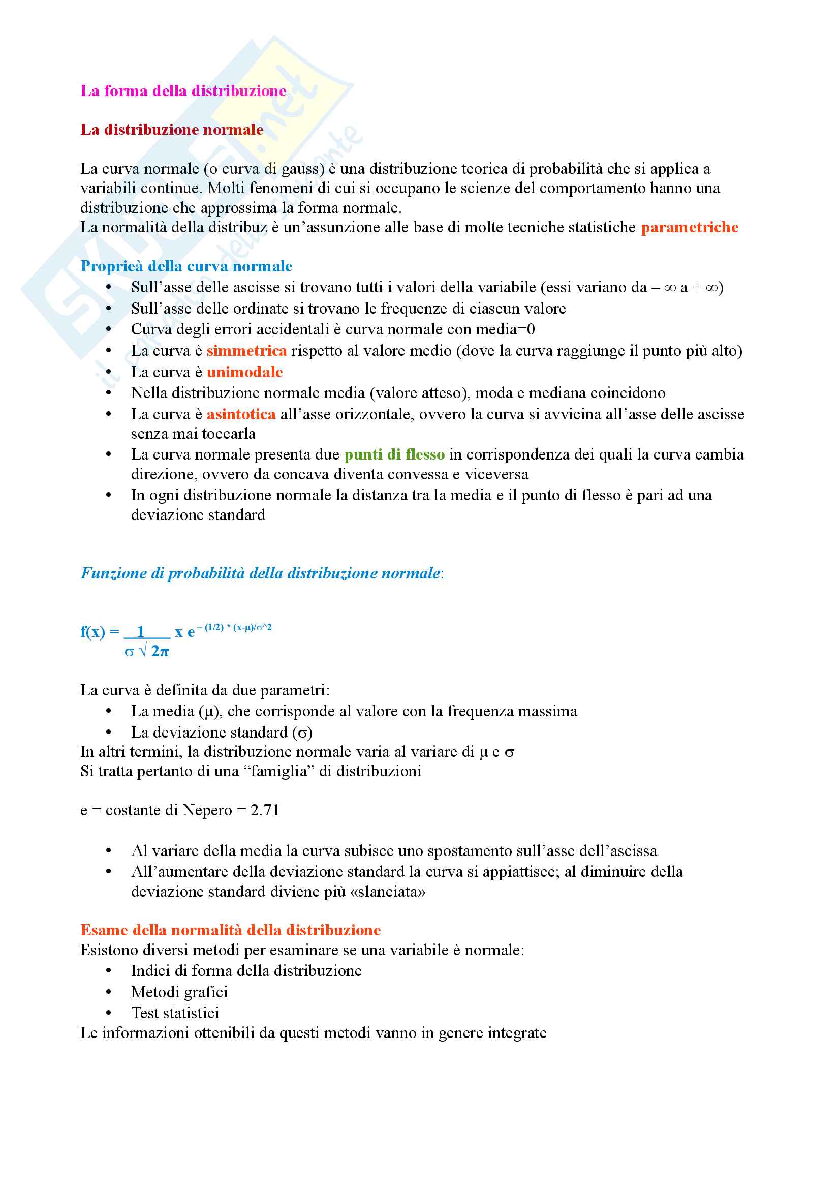 Tabelle distribuzione normale | Sintesi del corso di Statistica | Docsity