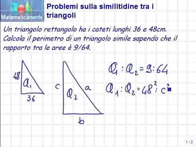 Un triangolo rettangolo ha i cateti lunghi 36 e 48cm. Calcola il perimetro di un triangolo simile sapendo che il rapporto tra le aree è 9/64.