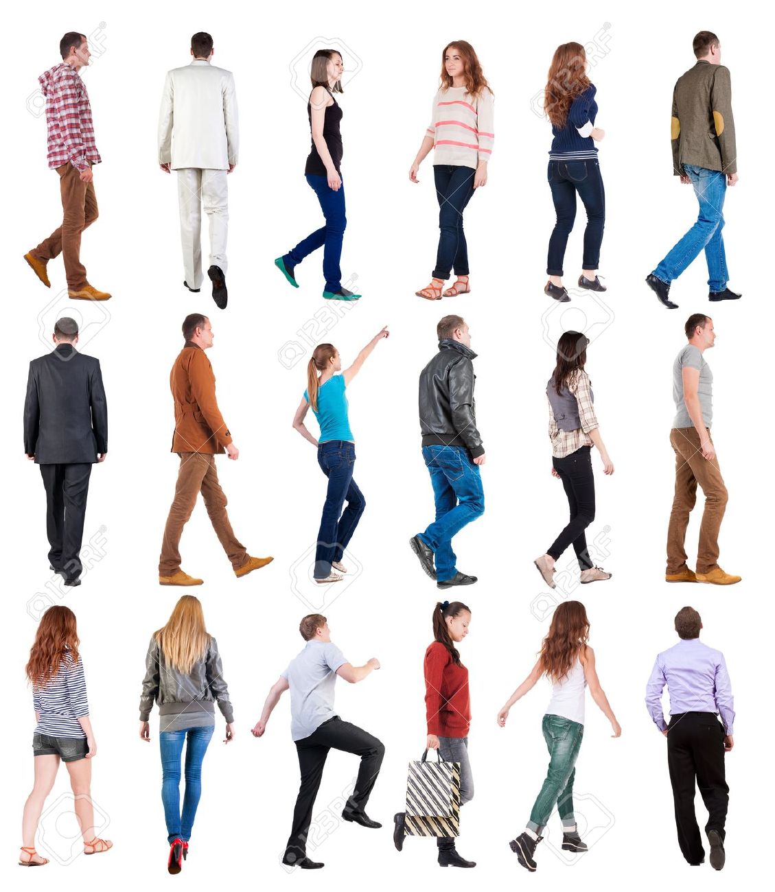 Collection " Back View Of Walking People ". Going People In Motion Set. Backside View Of Person. Rear View People Collection. Isolated Over White Background. Stock Photo, Picture and Royalty Free Image. Image 20692764.