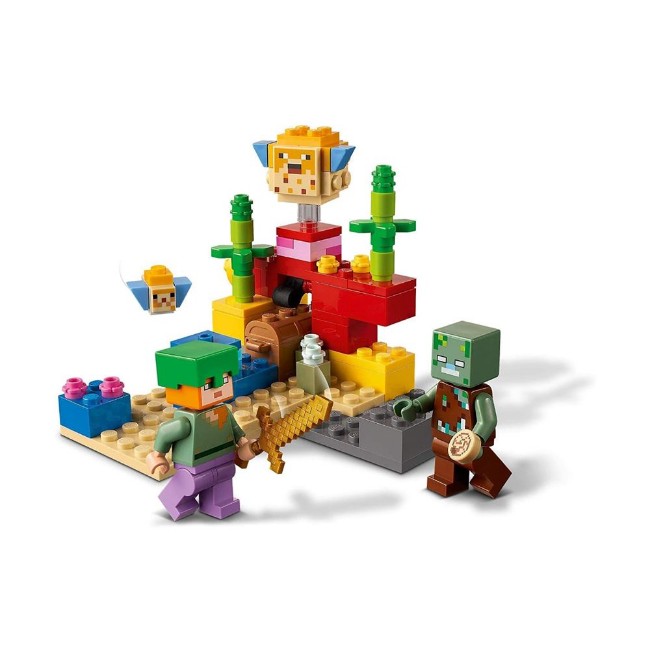 LEGO Minecraft La Barriera Corallina, Set di Costruzioni con Alex, Zombi Annegato e 2 Pesci Palla,
