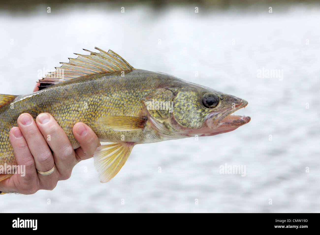Close up di un uomo in possesso di un pesce walleye, Haliburton, Ontario Foto stock - Alamy