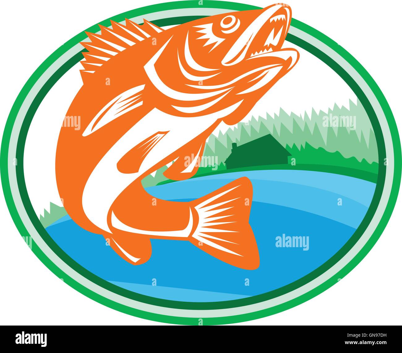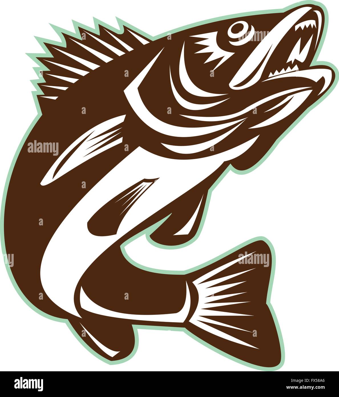 Lucioperca walleye pickerel o luccio giallo che salta su retrò 1913067 Arte vettoriale a Vecteezy