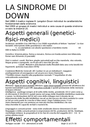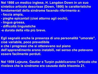 LA Sindrome DI DOWN - LA SINDROME DI DOWN Nel 1866 il medico inglese H. Langdon Down individuò le - Studocu