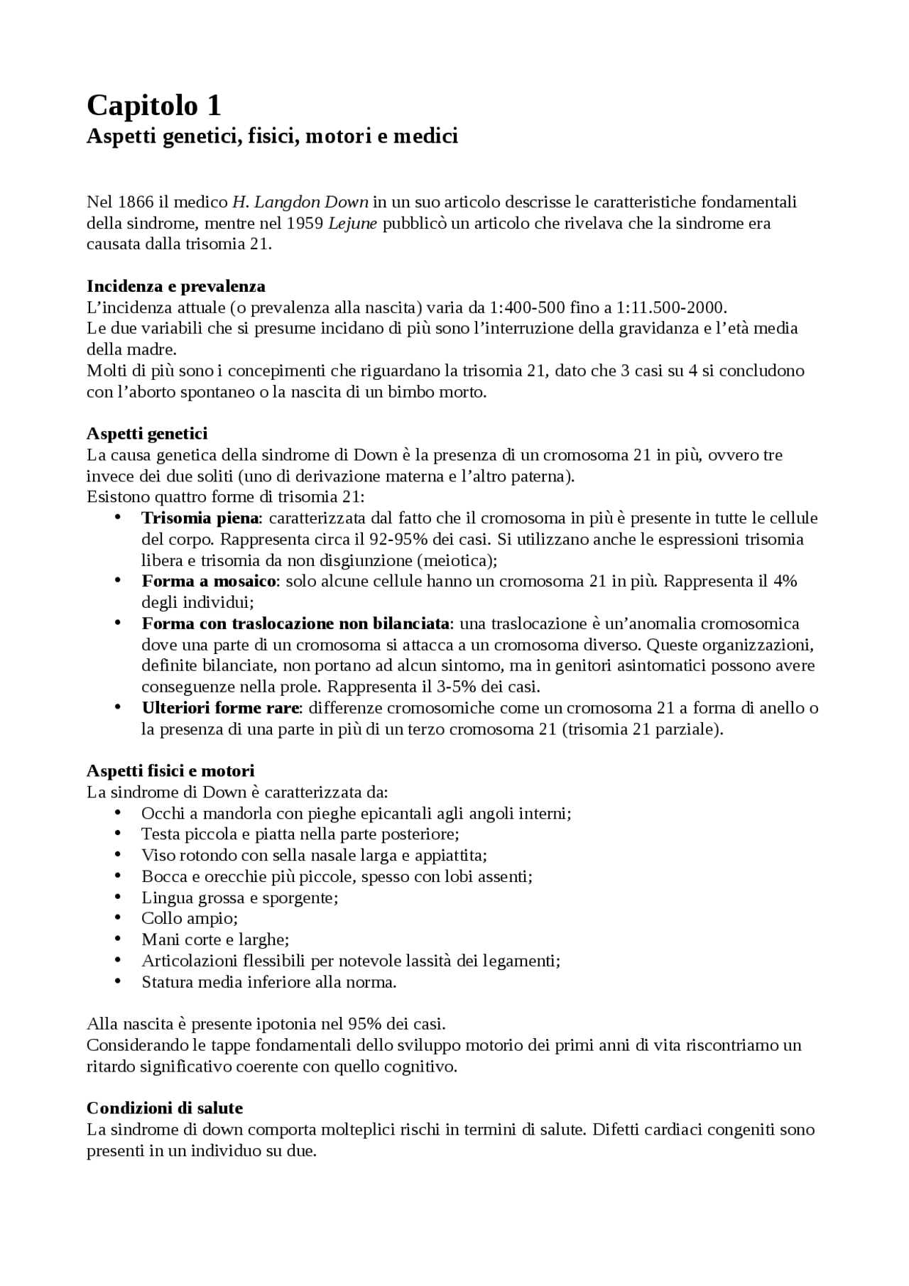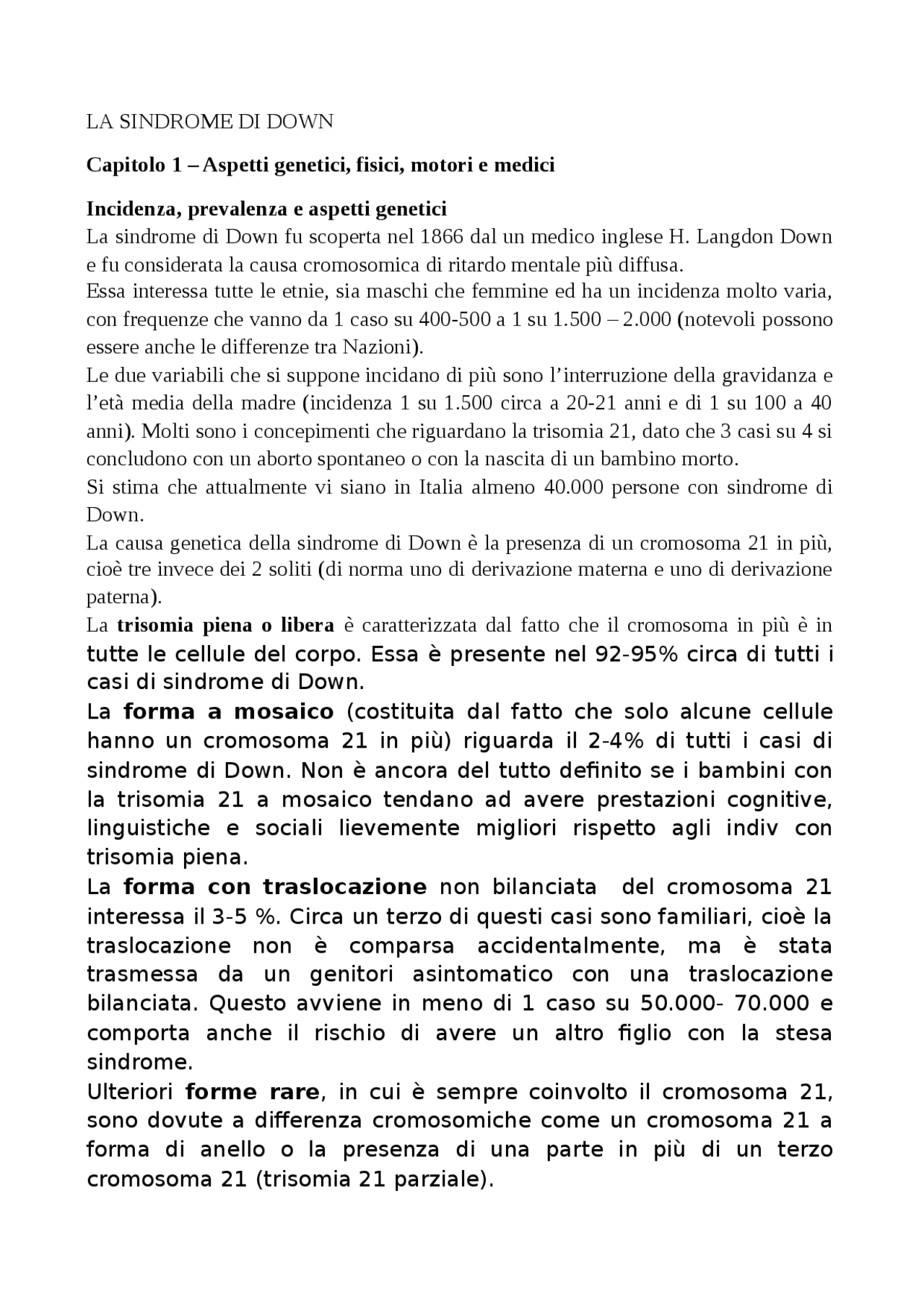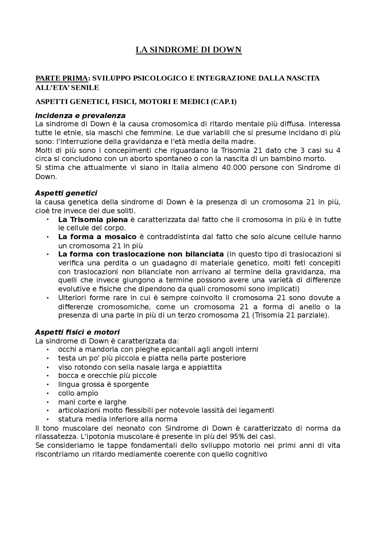 La sindrome di Down (Vianello) | Sintesi del corso di Psicologia Generale | Docsity