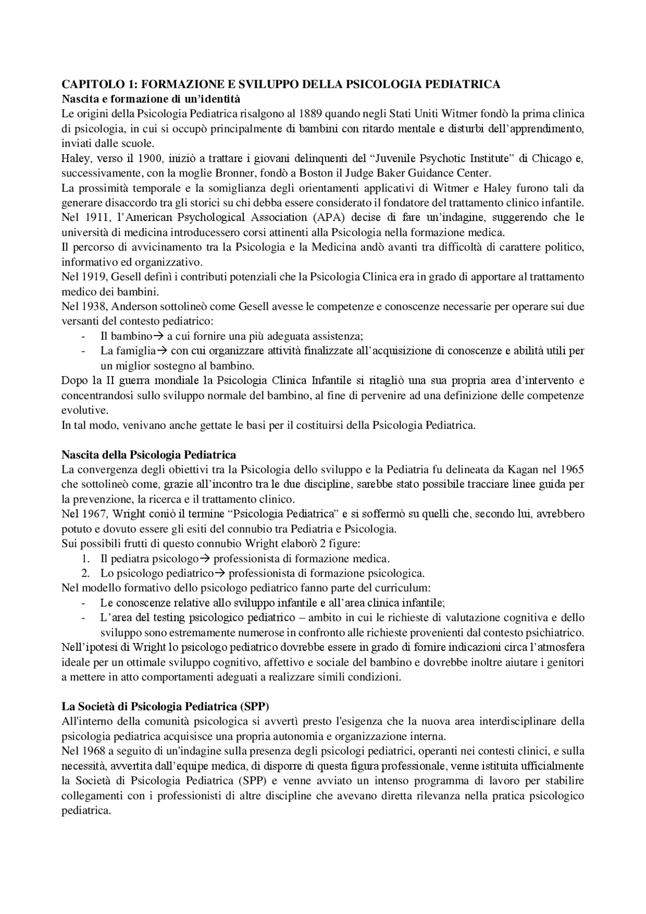 Psicologia Pediatrica - Baldini | Sintesi del corso di Psicologia Generale | Docsity