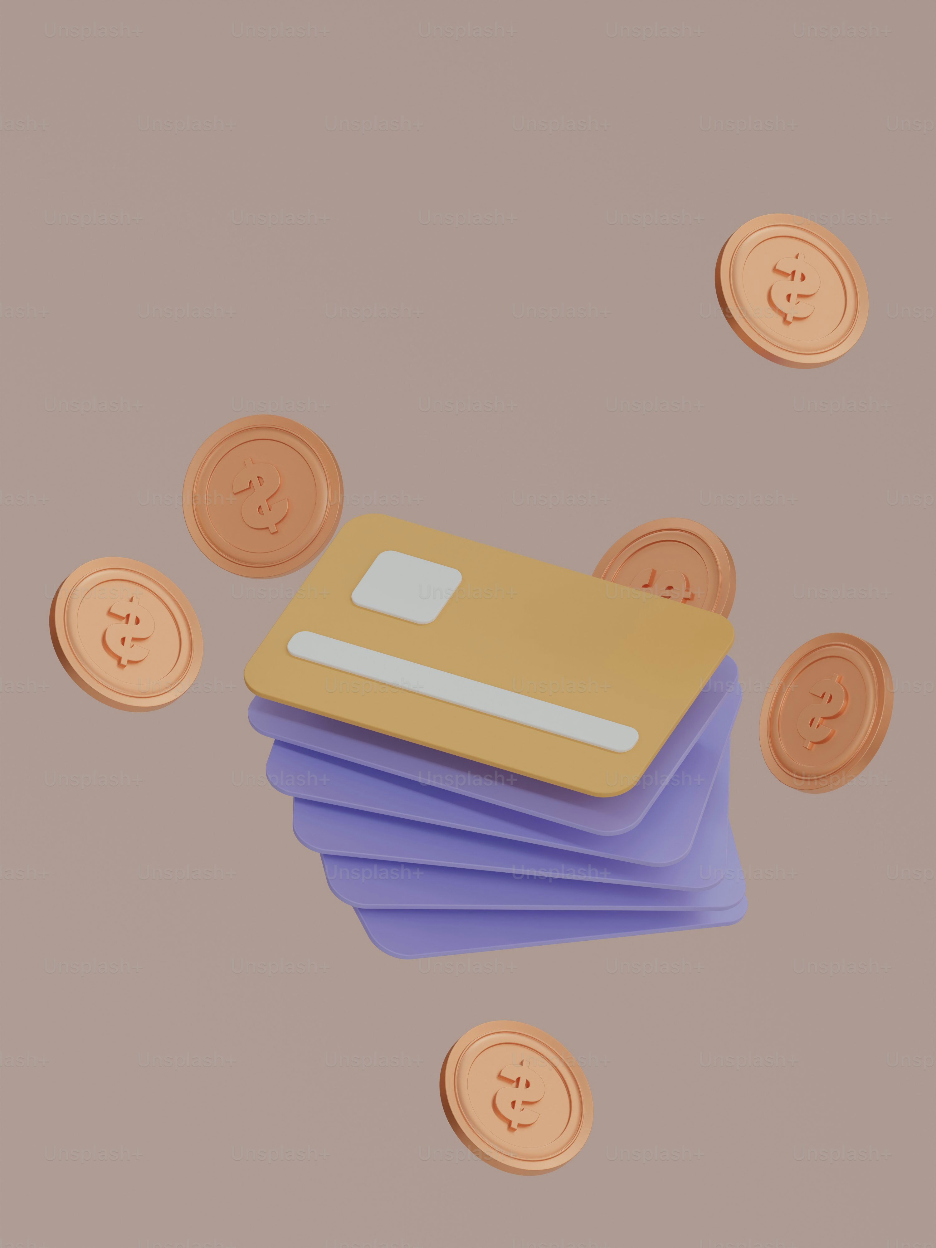 Una pila di carte e monete di plastica viola e arancione foto – Dollaro Immagine su Unsplash