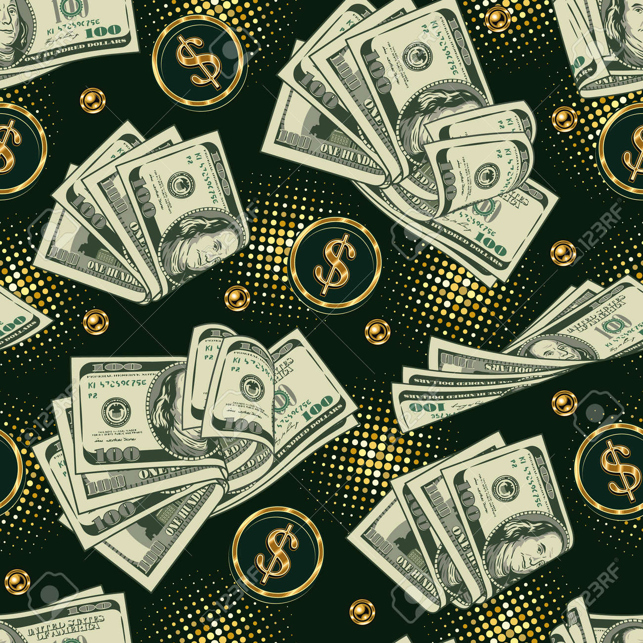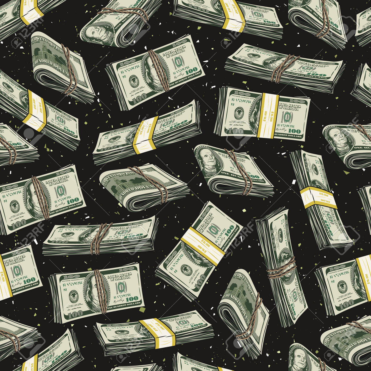 SVG, Vettoriale - Reticolo Senza Giunte Dei Soldi Con Mazzette Di Banconote Da Cento Dollari Americani Su Uno Sfondo Nero Con Texture. Pile Di Dollari Che Cadono. Illustrazione Vettoriale Dettagliata.. Image 198774136.
