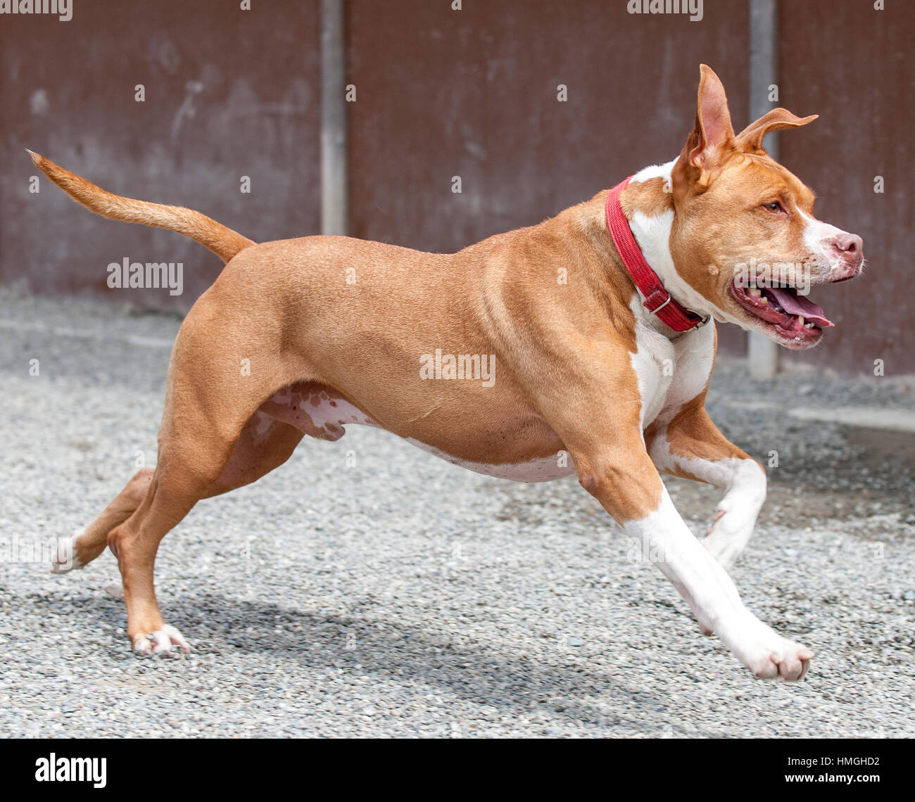Marrón & blanco American Pit Bull Terrier Fotografía de stock - Alamy