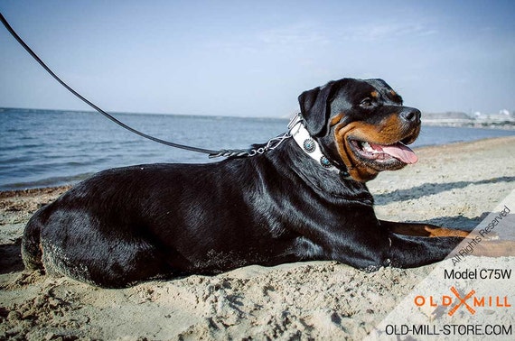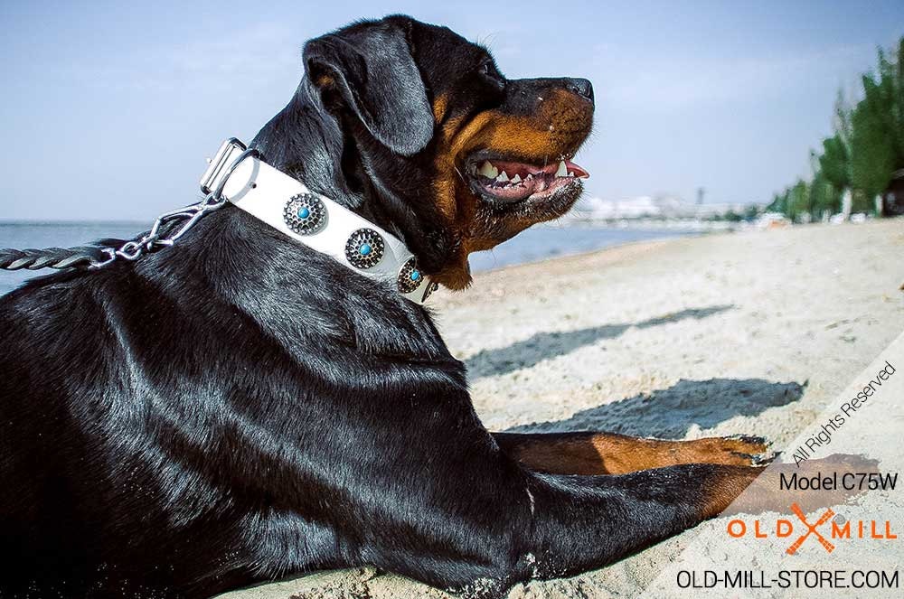 Rottweiler Collar With Silver-like Conchos and Blue Stones. - Etsy