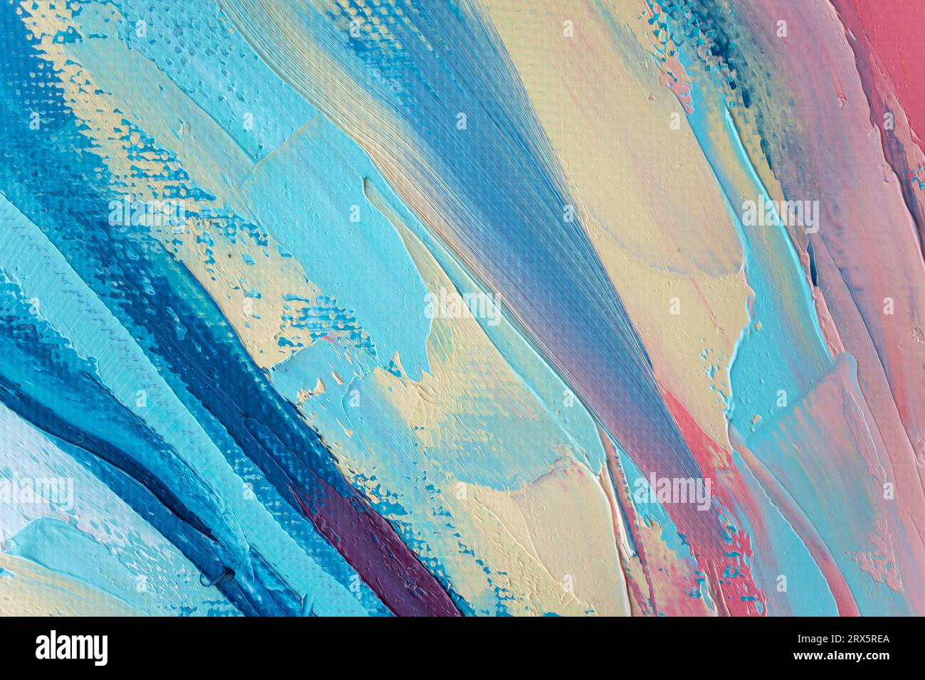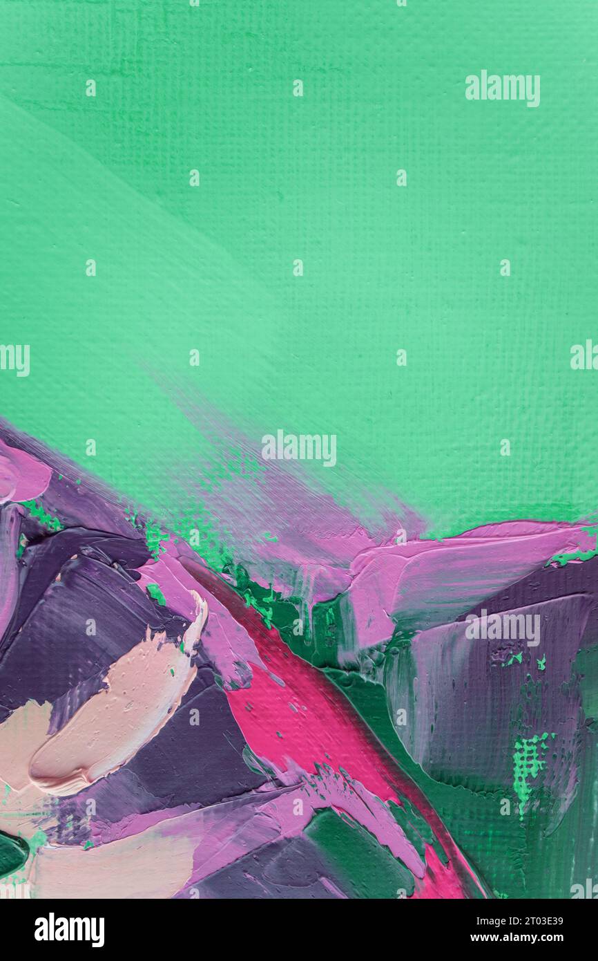 Primo piano della texture pittorica astratta ruvida e colorata, con pennellata ad olio, pittura a coltello su tela, colori complementari Foto stock - Alamy