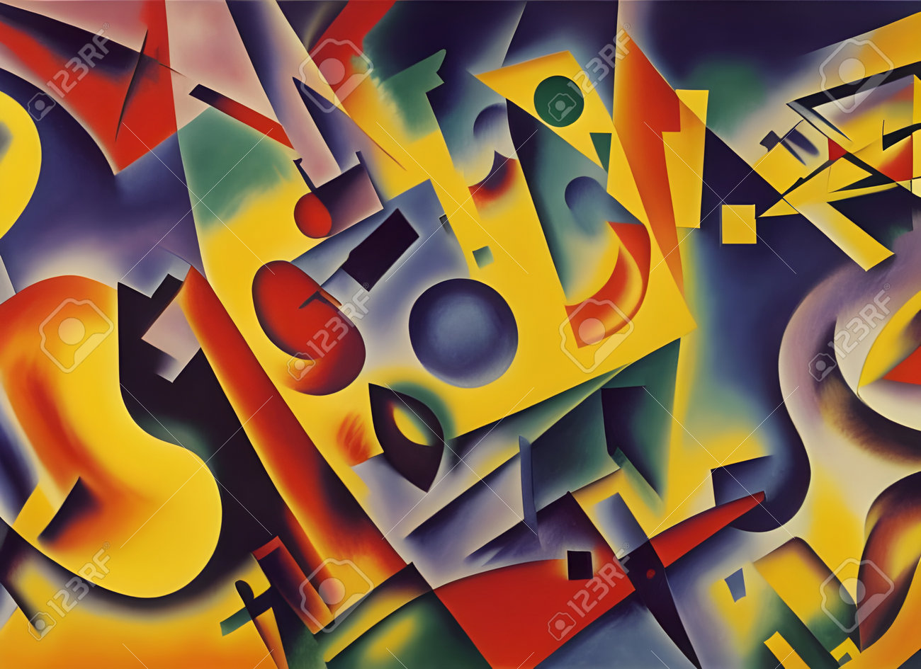 Immagini Stock - Pittura Astratta A Tema Tecnologia Moderna Con Colori Complementari E Forme Luminose Dinamiche. Illustrazione Ai Generativa.. Image 199596809