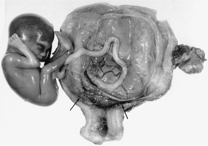 9. Extramembranous pregnancy with fetus. Note the size of fetus and the... | Download Scientific Diagram