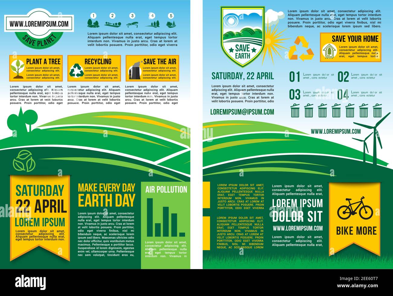 Salva il poster Planet o il design infografico per la Giornata della Terra. Informazioni sul riciclaggio dei rifiuti e statistiche sul risparmio energetico. Prevenzione delle emissioni di carbonio e b Immagine e