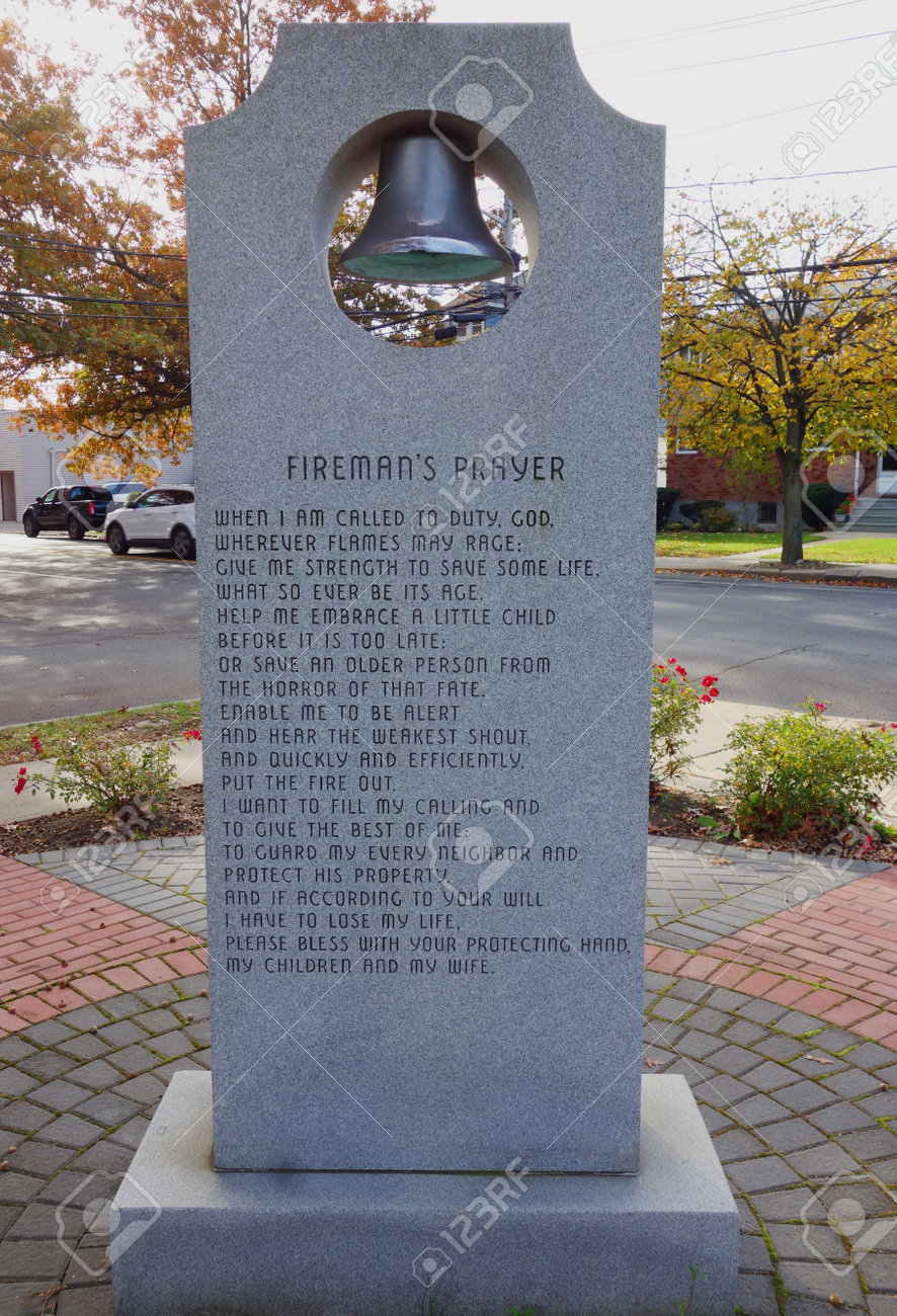 Immagini Stock - East Rockaway, New York - 10 Novembre 2016: La Preghiera Del Vigile Del Fuoco Al Memoriale Dei Pompieri In East Rockaway, New York. Image 65903851